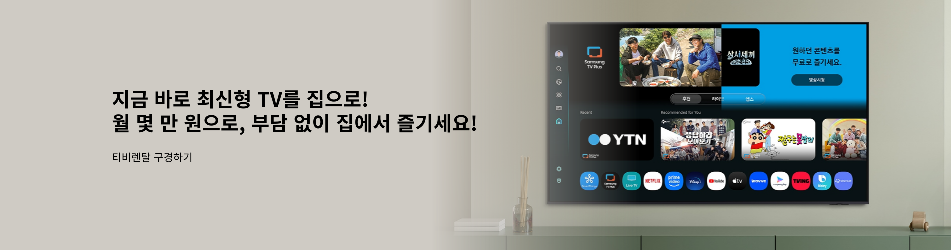베스트 렌탈 상품 스마트 60개월 의무사용 [삼성] 비스포크 그랑데 AI 건조기 17kg 화이트 월 렌탈료 29,000 할인적용 4,000 LG헬로 48개월 의무사용 [삼성] 비스포크 AI 세탁기 21kg 화이트 월 렌탈료 27,200 할인적용 2,200 LG헬로 60개월 의무사용 [삼성] 비스포크 AI 냉장고 905L 에센셜 다크메탈 월 렌탈료 47,500 할인적용 22,500 LG케어 60개월 의무사용 [코웨이] 아이콘 얼음정수기 스탠다드 (냉온정) 월 렌탈료 49,900 할인적용 9,900 LG헬로 60개월 의무사용 [삼성] QLED TV 75인치 월 렌탈료 66,500 할인적용 41,500 LG케어솔루션 72개월 의무사용 [LG] 디오스 오브제컬렉션 노크온 매직스페이스 얼음정수기냉장고 820L 클레이브라운/베이지 월 렌탈료 99,900 할인적용 73,900 LG케어솔루션 72개월 의무사용 [LG] 디오스 오브제컬렉션 빌트인 식기세척기 14인용 네이처베이지 월 렌탈료 37,000 할인적용 11,000 스마트 60개월 의무사용 [삼성] 비스포크 AI 무풍 클래식 2in1 에어컨 17+6평형 화이트베이지 월 렌탈료 67,500 할인적용 42,500