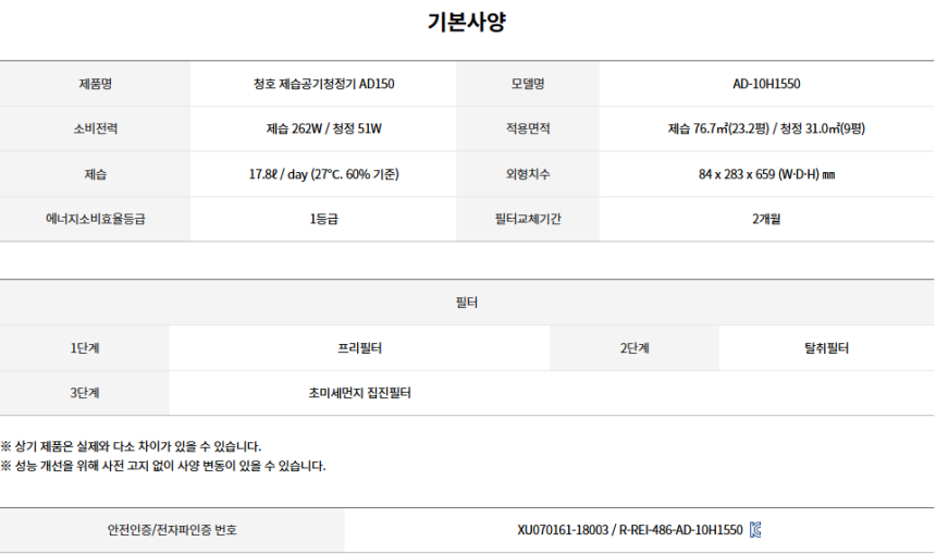 AD-10H7050 청호나이스 [청호나이스] 제습공기청정기 AD150 10평형 제품분류 청정기 평형 10평이하 기능 제습기능 AS기간 렌탈기간내 최저 렌탈가 월 22,900 (렌탈가) 제휴카드 할인가 월 (렌탈가) 3년 5년 방문관리/2개월 방문관리/2개월(타사보상) 방문관리/6개월 할인 제휴카드 보기 렌탈신청 장바구니